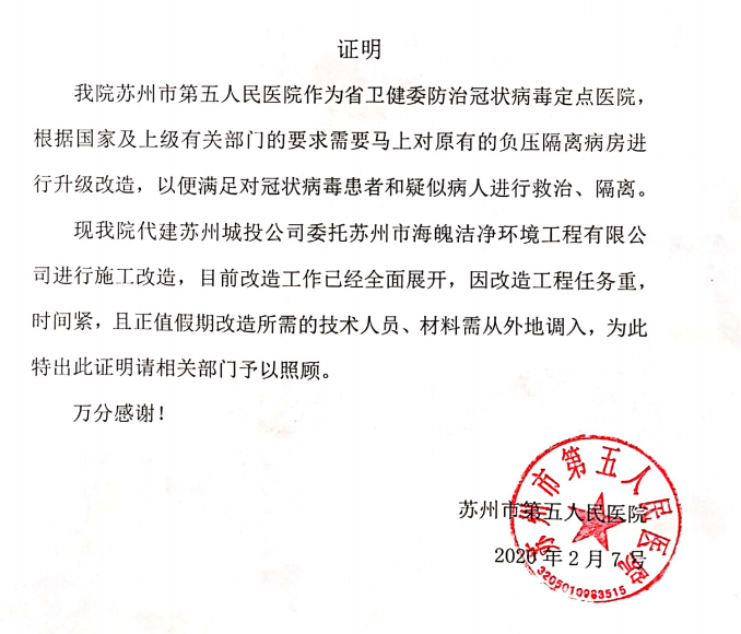 與疫情賽跑!美控助力蘇州第五人民醫(yī)院負壓病房建設