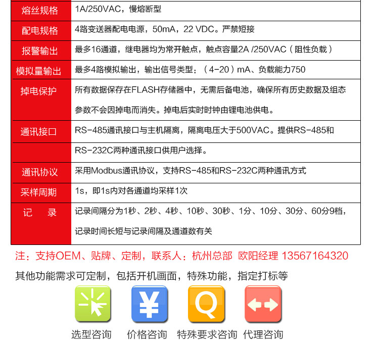 掉電保護(hù):所有數(shù)據(jù)保存在FLASH存儲器中,無需后備電池,確保所有歷史數(shù)據(jù)及組態(tài)參數(shù)不會因掉電而丟失