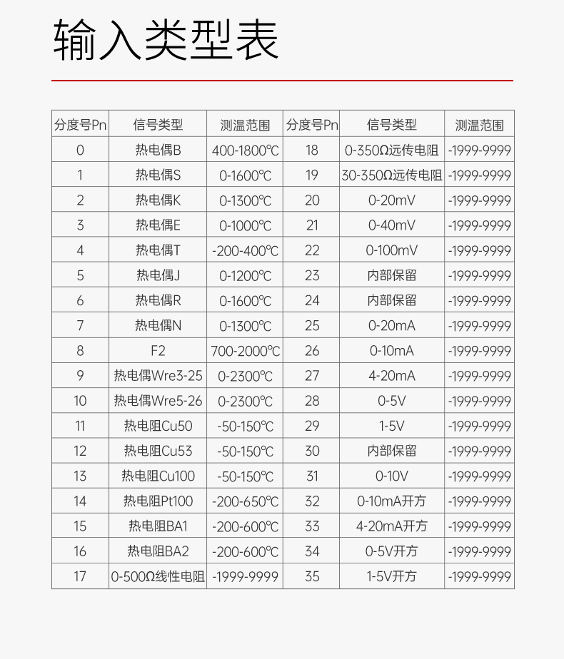 信號輸入:具備33種信號輸入(具體信號見下圖)