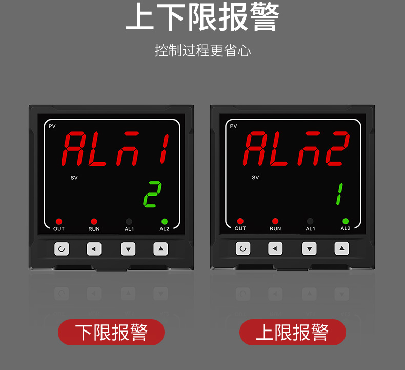 報(bào)警功能:具備上下限報(bào)警功能,帶LED報(bào)警燈指示可選