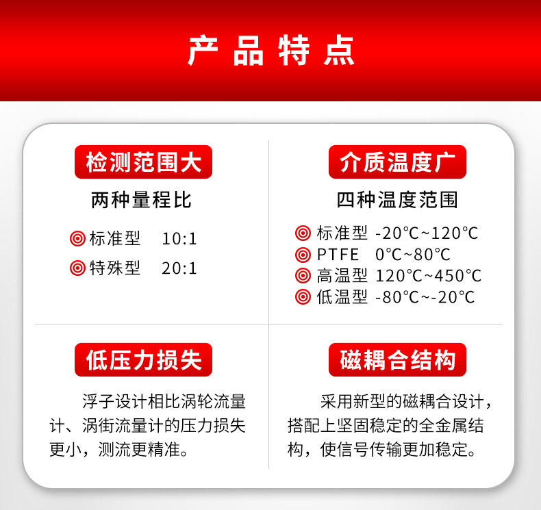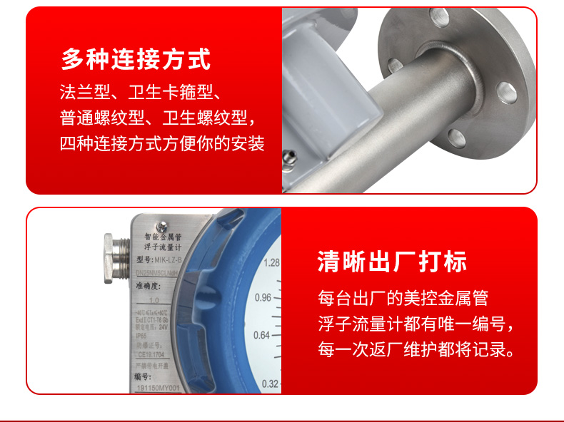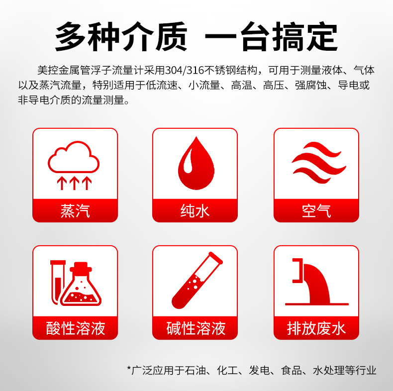 金屬管浮子流量計是采用可變面積式測量原理,用于連續(xù)測量封閉管道中的液體和氣體的體積流量。有就地顯示型和智能遠(yuǎn)傳型,支持多種輸出協(xié)議,為用戶提供非常廣闊的選擇空間;另外該儀表采用先進(jìn)的16位微處理器及高質(zhì)量工業(yè)化組件,保證了流量計在各種應(yīng)用場所的優(yōu)良性能。它可用來檢測液體、氣體以及蒸汽的流量,特別適宜低流速小流量的介質(zhì)流量測量。