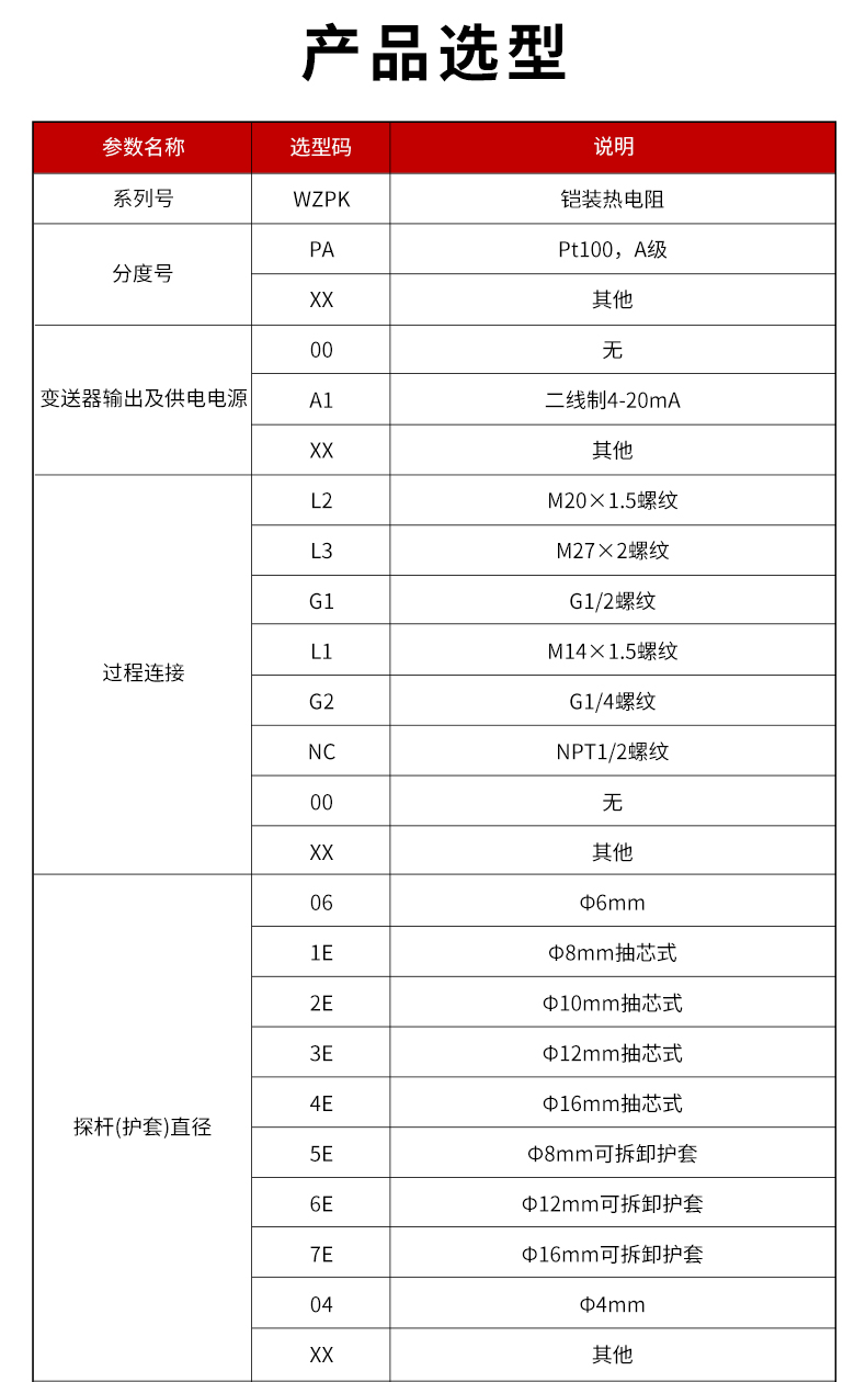 鎧裝熱電阻MIK-WZPK/熱電偶MIK-WRNK溫度傳感器全部采用的進口芯體,采用不銹鋼外殼,從而達到穩(wěn)定性好,精度高,抗震性能強等特點。目前市場上熱電阻主要是Pt100,熱電偶主要是K型、T型、S型、R型、B型、N型、E型、J型等8種常規(guī)型號,具體現(xiàn)場需要熱電阻還是熱電偶,主要根據(jù)現(xiàn)場測溫精度與測溫范圍確定。