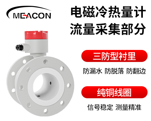 電磁熱量表主要是對熱交換系統(tǒng)中載能介質(zhì)(液體水)的供水溫度、回水溫度及瞬時(shí)流量進(jìn)行實(shí)時(shí)測量,并按照熱力學(xué)能量計(jì)算公式,對系統(tǒng)消耗的冷量或熱量值進(jìn)行計(jì)算并保存的裝置。其中電磁式流量傳感器是通過法拉第電磁感應(yīng)定律,將瞬時(shí)流量信號(hào)線性的變化為感應(yīng)電動(dòng)勢這一電信號(hào),從而得到瞬時(shí)流量信號(hào)。計(jì)算器將流量信號(hào)與溫度傳感器采集的溫度信號(hào)進(jìn)行積算,得出我們需要的能量值。