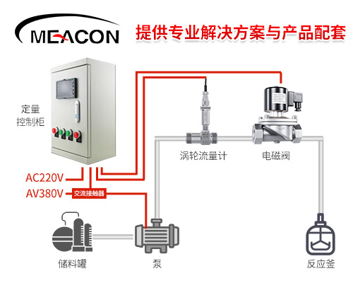 美控定量控制系統(tǒng)由流量積算儀、渦輪流量計、電磁閥等組成,可以通過設(shè)備聯(lián)動,自由設(shè)定液體出水量,更精準(zhǔn)的實現(xiàn)物料配比,全面提升生產(chǎn)效果。其工作原理是通過流量計提供流量信號給控制儀表,在控制儀表面板上設(shè)定需要定量值,達(dá)到設(shè)定定量之后,自動關(guān)閉電磁閥、水泵等??赏瑫r控制電磁閥,水泵,也可單獨控制??梢詮V泛應(yīng)用在食品、制藥、發(fā)酵、環(huán)保、精細(xì)化工等行業(yè)。