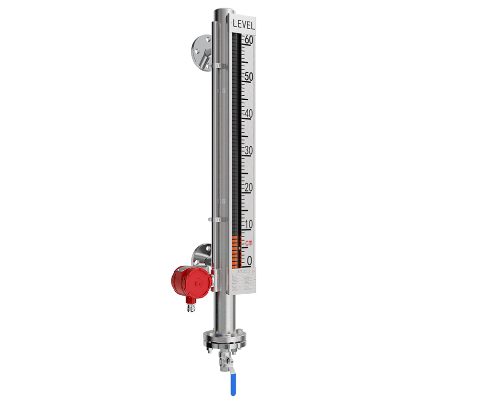 在液位計(jì)的主體上安裝變送器,可以實(shí)現(xiàn)遠(yuǎn)傳顯示,變送器由傳感器和轉(zhuǎn)換器兩部分組成,傳感器通過(guò)磁浮子上下移動(dòng),經(jīng)磁耦合作用使導(dǎo)管內(nèi)干簧管(或磁傳感器)依次動(dòng)作,獲得電阻信號(hào)變化,轉(zhuǎn)換成(4~20)mA 的標(biāo)準(zhǔn)電流信號(hào)輸出。在液位計(jì)主體上安裝報(bào)警開(kāi)關(guān),可實(shí)現(xiàn)報(bào)警或聯(lián)鎖控制。適用于低溫到高溫、真空到高壓等各種環(huán)境,是石油化工等行業(yè)理想的液位測(cè)量產(chǎn)品。