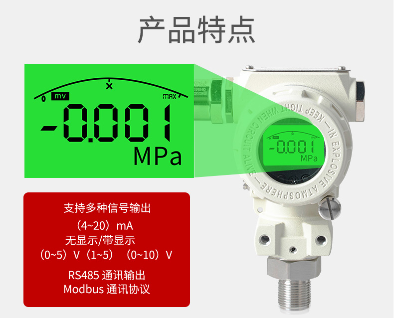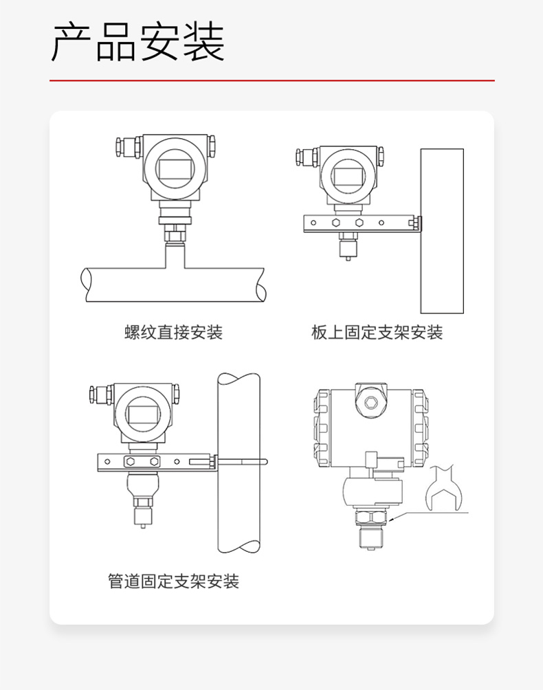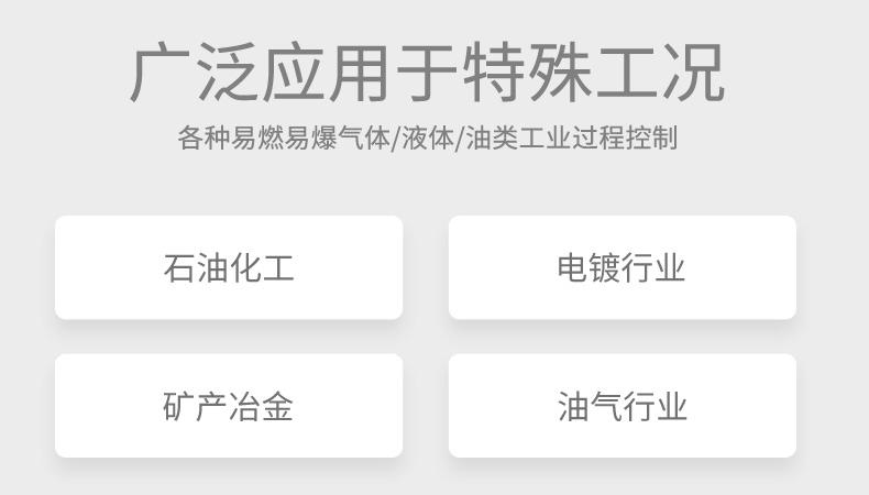 本款壓力變送器選用進(jìn)口高精度、高穩(wěn)定性的擴散硅芯體,傳感器內(nèi)采用電子放大器組成,將測量的電信號轉(zhuǎn)換成標(biāo)準(zhǔn)信號(電流、電壓、RS485)輸出,可以直接與計算機接口卡、控制儀表、智能儀表或PLC等方便相連,該系列產(chǎn)品廣泛應(yīng)用于工業(yè)過程控制、石油、化工、冶金等行業(yè)。