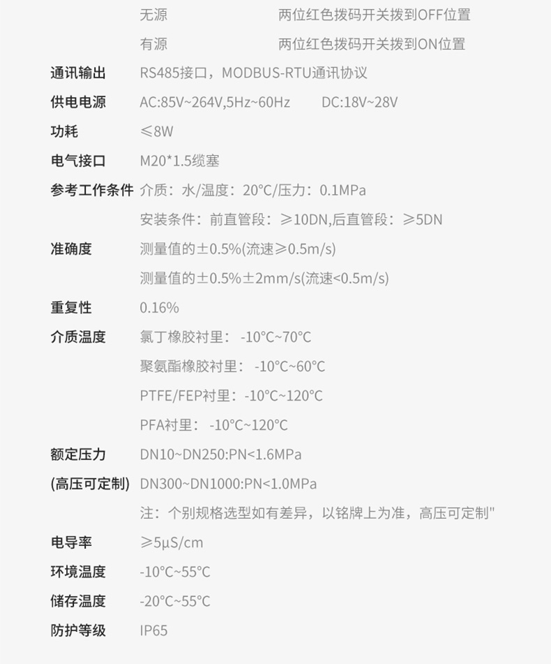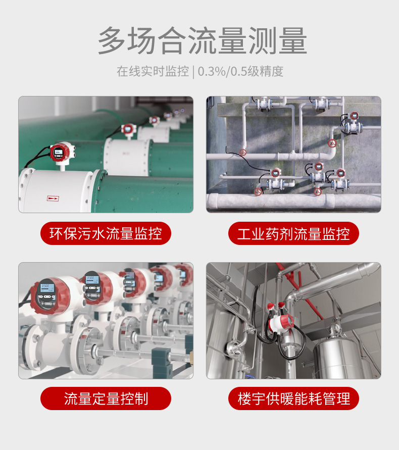 產(chǎn)品描述:電磁流量計(jì)基于法拉第電磁感應(yīng)原理設(shè)計(jì),用于直接測量封閉管道內(nèi)導(dǎo)電液體的瞬時(shí)流量,并具有流量累積功能。在進(jìn)行現(xiàn)場監(jiān)測顯示的同時(shí),可輸出標(biāo)準(zhǔn)的電流信號、脈沖信號和 RS485 數(shù)字信號,供記錄、調(diào)節(jié)、控制使用,實(shí)現(xiàn)檢測自動控制??蓮V泛應(yīng)用于自來水、化工、煤炭、環(huán)保、輕紡、冶金、造紙等行業(yè)。
